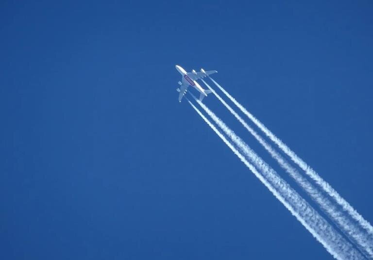 Я просто обожаю эти следы! Особенно когда их много, я как маленький ребёнок показываю в небо пальцем и кричу: «Смотри самолёт» Хотя сама почти каждый день на них летаю. Хотелось бы, чтобы это была волшебная пыль, но нет. Полосы в небе— это всего лишь следы конденсации самолета, их еще называют — инверсионные следы. Как же получатся эти следы? В полёте, когда двигатели самолёта работают, там скапливаются газы. В состав отработанных газов входит водяной пар, углеводороды и сера. При выпускании газов двигателем в атмосферу на высоте 10.000 тысяч метров, где температура -60 градусов, пар конденсируется, создавая белую полосу. Это оптический эффект. Наверно ты видел во время парада на 9 мая, когда полетают самолёты и вместо белой полосы, тянется цветная. Пар окрашивают специальными добавками, для мероприятия Почему иногда есть след, а иногда нет? Это зависит от температуры и влажности воздуха Одним из продуктов сгорания топлива является вода. Она добавляется к пару, содержащемуся в
