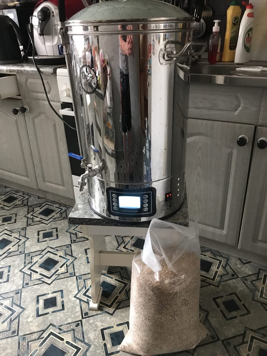 Собираем пивоварню Easy brew на 40л и готовим ингредиенты: 6кг венского солода (Курск), 50гр хмеля Perle (можно заменить хмелями: Saaz, ранний московский, жатецкий и так далее), дрожжи Safale S-33.