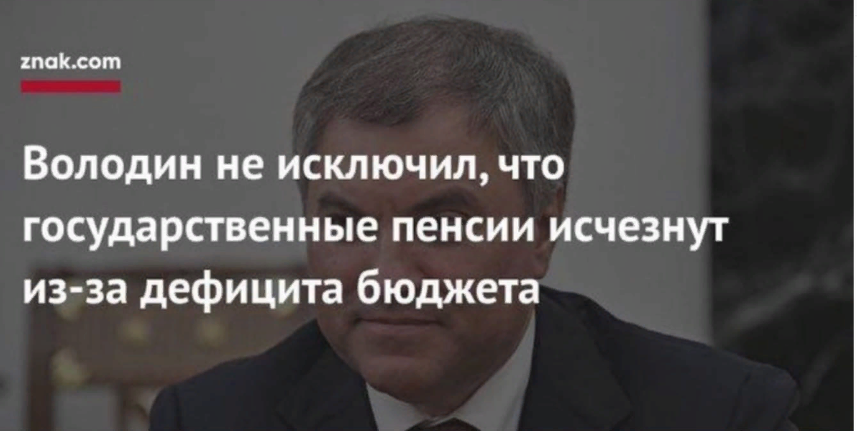 Спикер Госдумы Вячеслав Володин не исключил отмену государственных пенсий. Об этом он сказал на встрече с жителями Саратова. Вопрос существования государственных пенсий стоит из-за дефицитного бюджета, передает слова Володина агентство FreeNews-Volga. Так спикер Госдумы ответил на вопрос жительницы Саратова, которая сказала, что у нее очень маленькая пенсия, а из-за реформы она и ее внуки могут не дожить. Володин, как отмечается, в ответ попытался отшутиться, а затем, когда вопрос повторился, сказал, что пенсионная система уже сейчас имеет дефицит, который заполняется также из дефицитного бюджета. Кроме того, спикер Госдумы призвал думать не о возрасте прекращения трудовой деятельности, а о повышении размера пенсий. Он сказал, что раньше в Саратовской области на одного пенсионера приходилось 4 работающих человека. Губернатор региона Валерий Радаев в ответ дополнил, что сейчас это отношение равно 1 к 1. В заключении Володин сказал, что если пенсии не будут повышаться, люди поставят