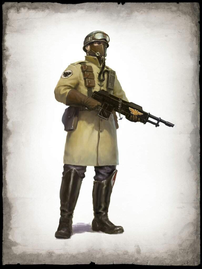 Чтобы дослужиться до командира в Стальном Легионе, недостаточно быть самым метким, сильным и исполнительным. Важно заслужить авторитет среди своих боевых товарищей, продемонстрировав умение читать бой, организовывать бойцов и принимать решения в быстро меняющихся условиях. Как правило, это очень опытные и умелые бойцы, давно воюющие на Армагеддоне. Как говорится, если ваш командир плох, то тут даже Император вам не поможет. Зачастую бывшие главари бандитских группировок и вырываются в офицерский состав, применяя на войне весь тот опыт, что накопили за долгие годы.