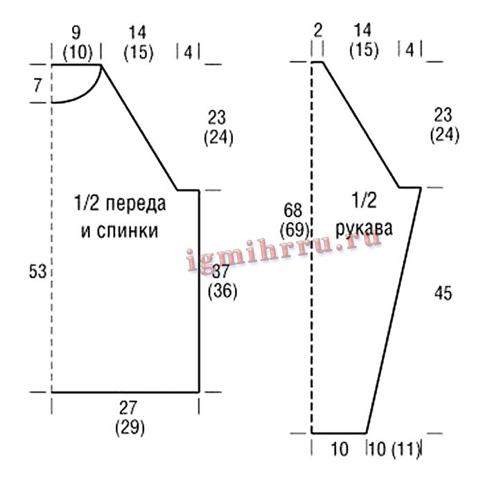 Внимание! Перед началом работы выполните выкройку спинки и переда в натуральную величину и все убавления выполняйте в соответствии с выкройкой.