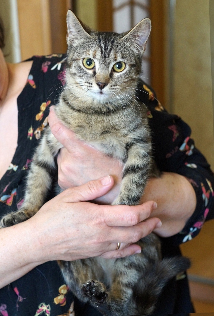 Ещё недавно эта полосатая малышка изо всех сил цеплялась лапками за жизнь, выживая в сыром подвале. По воле случая её и братика заметила неравнодушная женщина и забрала на передержку.