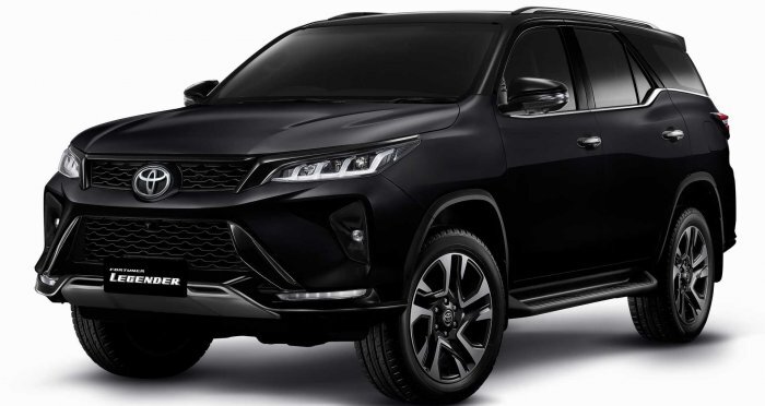 Топовым выполнением Fortuner назначен собственное имя: Legender. Такую версию отличают иная передняя часть, двухцветная окраска кузова с дополнительными декоративными элементами, оригинальные 20-дюймовиколеса. Внутри такие Fortuner
