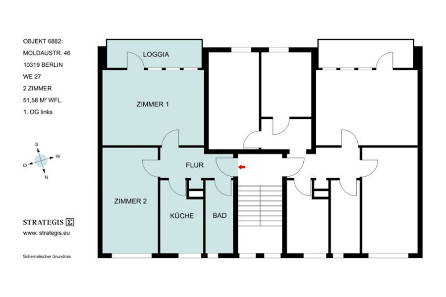 Заходим с лестницы по красной стрелочке, как на плане, и видим..