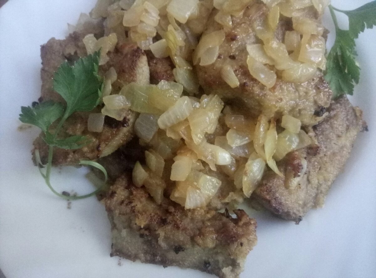 Готовую #печень выкладываем на тарелку и сверху покрываем приготовленным луком.