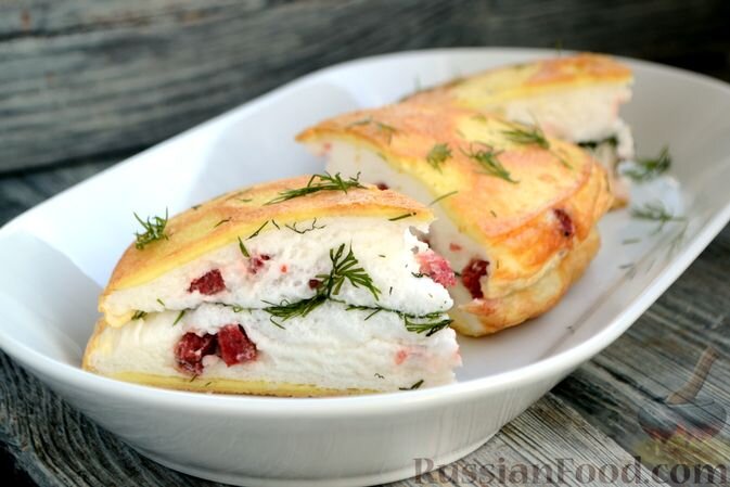 С орехами, хлебом, колбасой и зеленью - такие омлеты не останутся незамеченными! Обычный омлет может стать очень сытным, ярким и оригинальным блюдом, если добавить в него несколько интересных ингредиентов. Омлет с болгарским перцем и лукомдополнен кубиками поджаренного хлеба. Услада для глаз и желудка! Омлет по-имеретински отличается от классического омлета одним важным ингредиентом - в омлетную смесь добавляются измельчённые грецкие орехи. За счёт этого омлет приобретает отчётливый ореховый вкус и аромат, а также более тёмный цвет. Оригинальный омлет с овощами "Цветок" очень прост в приготовлении. Используя кусочки помидоров и ломтики кабачков, можно приготовить завтрак, который непременно поднимет настроение одним своим видом! Нарядный, пышный, красивый омлет "Пуляр" с колбасой и зеленью готовится из отдельно взбитых желтков и белков. Этот воздушный, словно облачко, омлет, привнесёт торжественные нотки в ваше меню. Ещё больше интересных рецептов смотрите в нашей рубрике “Омлет”. Про