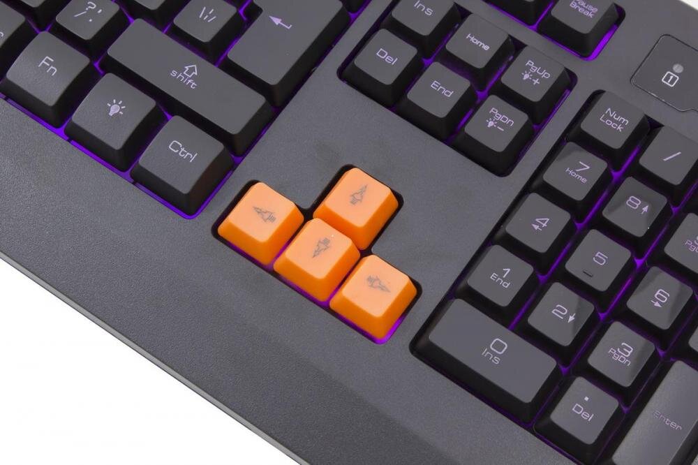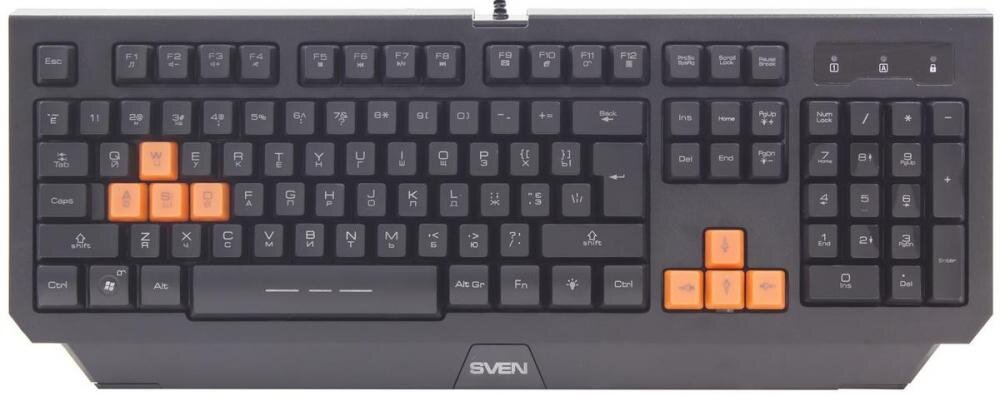 SVEN Challenge 9300 – клавиатура со сменными кнопками и тремя режимами подсветки То, что Challenge 9300 относится к игровому сегменту, становится ясно с первого взгляда: важные для геймера клавиши WASD и стрелки имеют ярко-оранжевый цвет. Впрочем, здесь все гибко – при желании их можно заменить на простые черные клавиши, которые входят в стандартный комплект поставки. Клавиши выполнены из немаркого пластика. Пальцы не соскальзывают даже во время напряженных баталий. Корпус пластиковый, к сборке претензий не возникло: нижняя часть крепится к верхней с помощью 15 винтов.