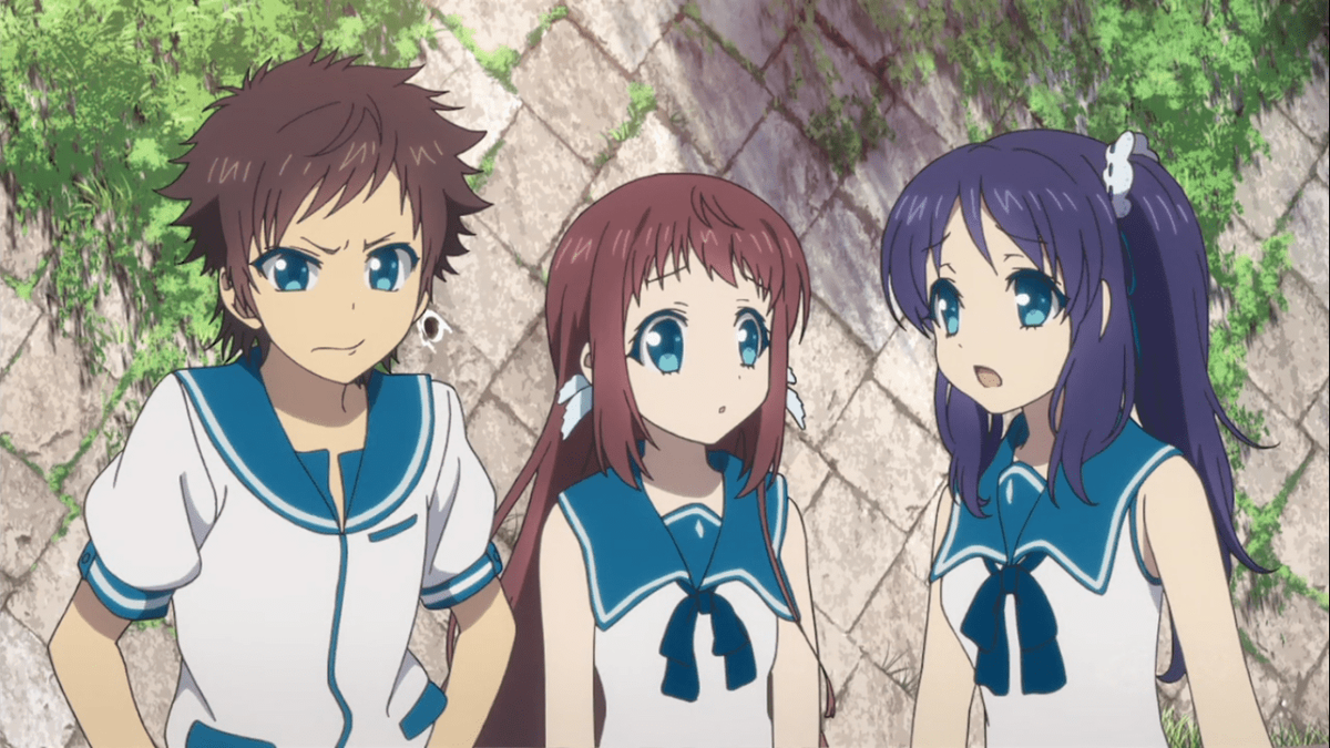 Безоблачное завтра Пролог: Давным давно люди жили, учились и работали в океане. Но всех всегда манит неизведанное, и все больше людей стремилось освоить сушу. После этого было введено одно правило – тот, кто покинет океан ради суши, больше никогда не сможет вернуться в морское царство. Теперь друзья детства Манака и Хикари, а также Канаме и Чисаки посещают школу на суше, так как их морскую школу закрыли и оканчивать ее придется на берегу. Хикари влюблен в Манаку, но у него довольно странный способ это выражать – он постоянно придирается к ней, критикует и кричит на нее. В очередной раз после конфликта, собираясь в новую школу, Манака отстала от своих друзей и ее поймали рыбаки, которые рыбачили не в положенном месте. В тот самый момент между ней и парнем, словившем ее, возникла искра. На обряде вольных челнов, который проходил в новой школе, Манака не почтила господина Урокко должным образом, за что тот ее проклял и теперь у нее на коленке – рыбья голова. Теперь Манаку хочет утешить не