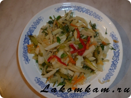 Добавить зелень, заправить подсолнечным маслом.
