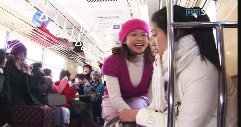 В вагоне Хана села отдельно от одноклассников, подальше от ликующей толпы, и предалась своим размышлениям. Ей сейчас было совсем не до веселья – всецело поглощённая событиями, происшедшими с ней накануне, она едва сдерживала слёзы. Мика же, наоборот, вмиг забыв про свою печаль, подключилась к веселящимся одноклассникам. Она пыталась увлечь Хану к ним, но подруга была очень грустна и отказалась к ним присоединиться. Рю, как полагается, был снова в центре внимания – он играл на гитаре и пел, ребята дружно подпевали, но его очень беспокоило настроение Ханы, и он постоянно бросал на неё обеспокоенные взгляды. Она поймала его взгляд и, чуть склонив голову, извиняющеся улыбнулась.