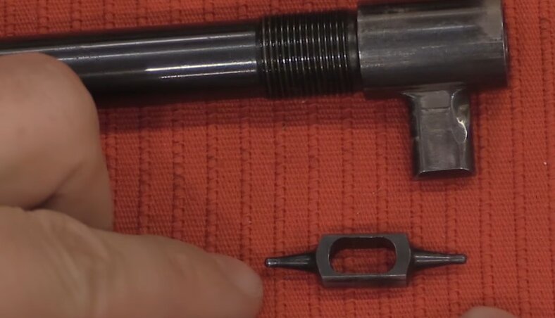 Шток поршня играет роль затворной рамы, вокруг поршня накручивается трубка, которая нужна для взведения затвора, и эта трубка проходит вокруг газовой трубки. Т.е. поршень находится в газовой трубке, а газовая трубка в свою очередь в трубке взведения затвора. Стрельба с открытого затвора, при выстреле поршень/затворная рама с затвором движутся вперед, затвор досылает патрон в патронник, поворачивается, запирая канал ствола на два боевых упора в задней части затвора, и ударник находящийся неподвижно на поршне/затворной раме проходит через зеркало затвора накалывая капсюль. Ударник двухсторонний, т.е. если одна сторона сломается или затупится от настрела, можно просто развернуть его. Затворная группа движе
