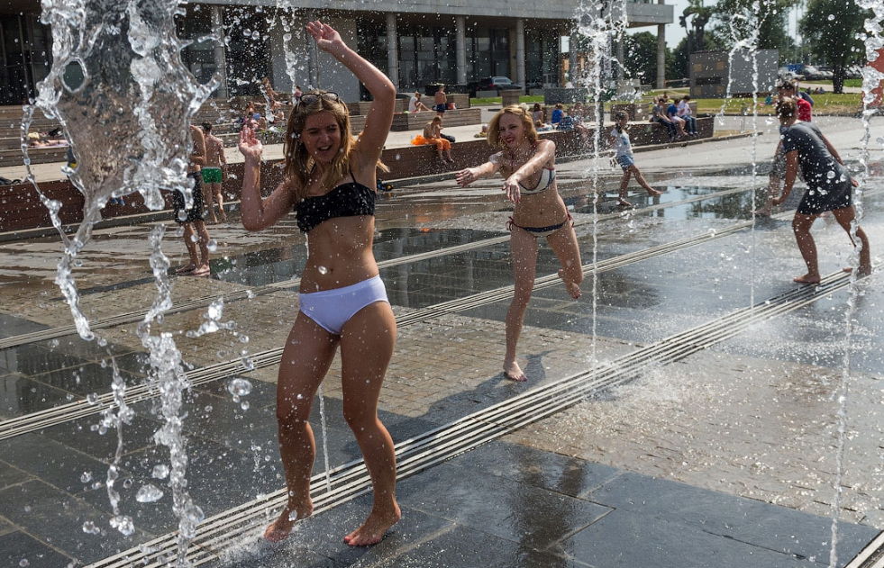 Конечно, кутаться в жару глупо. Но легкий шарф на шее отлично охлаждает шею - зону, ответственную за правильную терморегуляцию. В самое жаркое время дня носите головной убор, а шею повяжите шелковым шарфом или светлым платком, намоченными в воде.