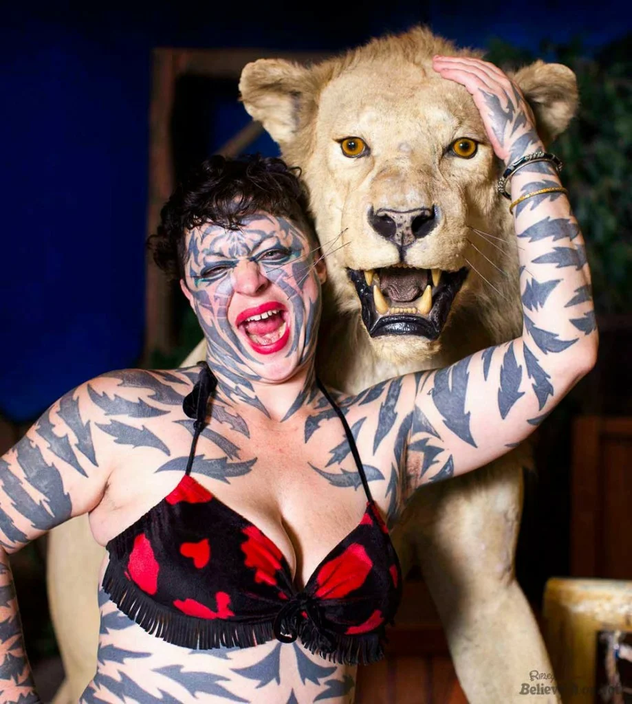 Пять человек, которые добровольно превратились в ходячих монстров из фильмов ужасов, считаются такими медицинскими терминами, как дисморфомания. Катцен Гоббс (Женщина-тигр) С раннего возраста Катцен Гоббс из Техаса был одержим идеей превращения в полосатого кота. Но есть одна вещь, которую я хочу, и другая. Поэтому, когда ей было 18 лет, с согласия ее матери она начала активно посещать тату-салоны, чтобы осуществить свою мечту. Будучи молодой, Катцен пронзила пером усы с кошачьими усами, которые раздулись в разных направлениях, но были вынуждены удалить их, потому что они попали в ее поле зрения, таким образом мешая. Эрик Спраг (Человек-ящерица) Эрик родился в 1972 году и в настоящее время является одним из самых известных людей, чтобы настроить его внешний вид. Почти все тело человека покрыто зеленой чешуйчатой татуировкой. Он считает себя полноценным безумием, которое он отметил на своей груди надписью. Как и Мария Кристерна, Спраг имплантировал имплантаты под кожу лба, а также
