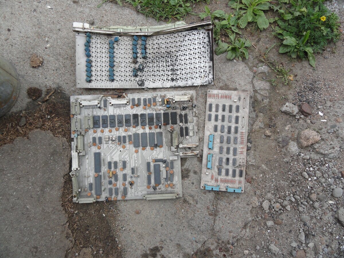 При разгрузке тележки под ноги попался отрезок трубы и три платы от какого-то старого советского электронного аппарата.