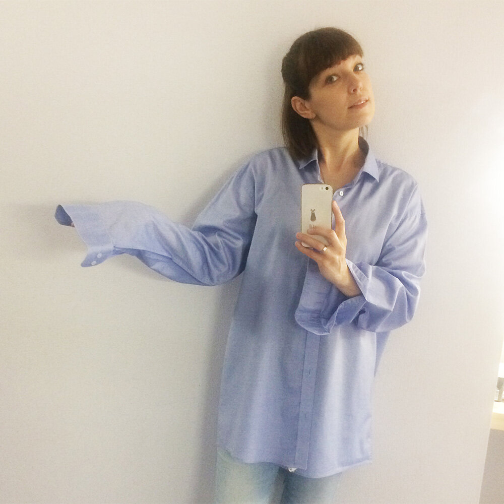 Всем добрый день. Для тех, кто не видел предыдущую мою статью про переделку мужской рубашки, продублирую кусочек текста. Так как был комментарий, зачем покупать дорогие мужские рубашки, чтобы из них потом шить новые? Я говорила: " Мужа я кормлю много и вкусно))), а поэтому периодически приходится обновлять гардероб... и у меня появляются материалы для творчества! Так что вчера вечером мне достались аж 4 рубашки, с которыми можно смело экспериментировать". Рубашек у мужа много, он не одну занашивает... А вообще что в рубашках страдает в первую очередь обычно? Это воротники, манжеты, ну еще пройма может быть. А в целом центральная часть вообще всегда как новая. Пока я перешивала эти две рубашки, у меня добавились еще две летние с коротким рукавом. Так что обновок будет много))), если не испорчу чего-нибудь. А это я могу, редко, конечно, но бывает. Ведь крою я на себя на глаз, а поэтому на подобные переделки не трачу много времени. Итак, вот еще одна идея платья. Если в предыдущем вар