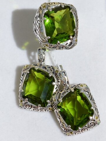 Кольцо и серьги из серебра. Цена 7200. Вставка кварц/оливин. Интернет-магазин lucet.ru