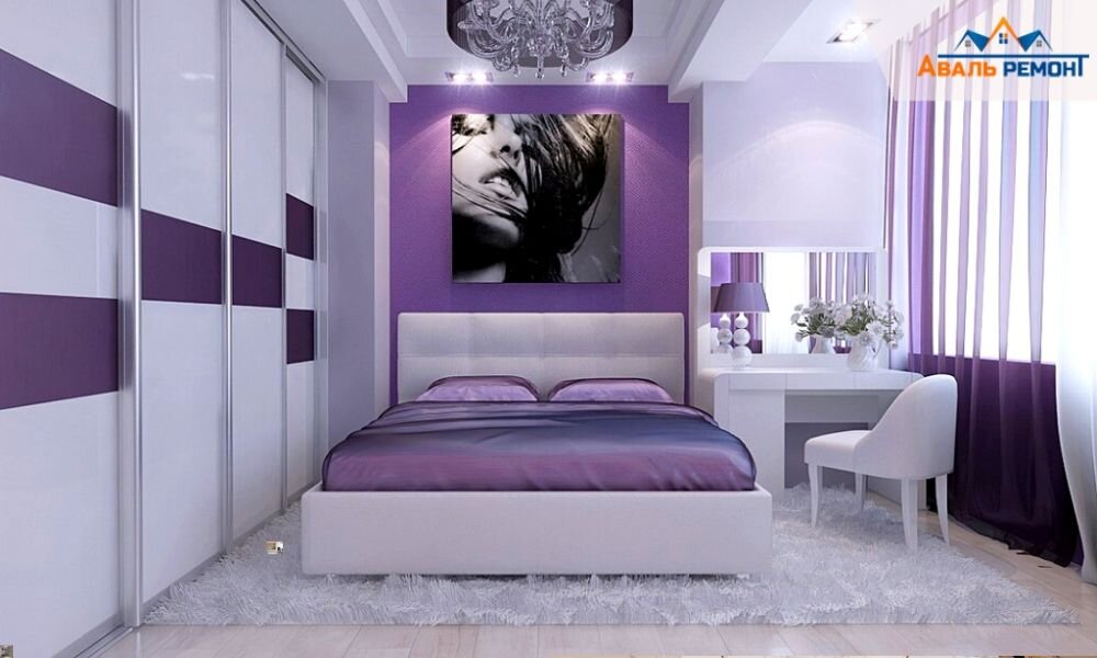 Фиолетовый цвет необычайно многогранен. В группу данных оттенков входят сиреневые, баклажановые, темно фиолетовые, виноградные, лиловые, винные и некоторые другие тона. Поэтому продумывая дизайн интерьера, дизайнеры «Авальремонт» ориентируются на то, для какой комнаты или помещения он разрабатывается, какой стиль необходимо поддержать в помещении и что будет более уместно в этом случае для достижения требуемого эффекта.