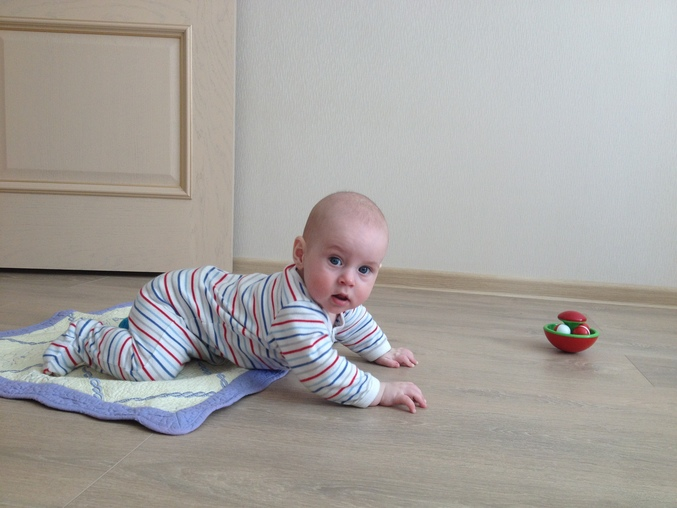 В этом возрасте важнее всего то, что малыш пытается передвигаться, даже когда не ползает. Если ребенок пробует встать на четвереньки и раскачивается вперед-назад в таком положении, это абсолютно нормально.