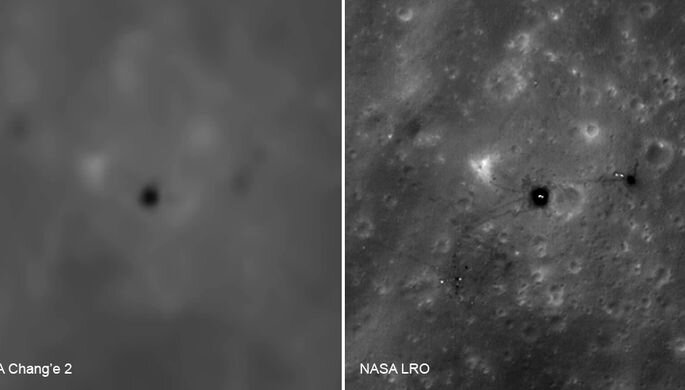 Китайская автоматическая станция «Чанъэ-2» провела съемку мест посадок американских пилотируемых кораблей по программе «Аполлон». Снимки выложены на портале научных данных Китайской программы изучения Луны в 2018 году, но в широком доступе оказались только в мае 2020 года в книге Виталия Егорова «Люди на Луне. Главные ответы».