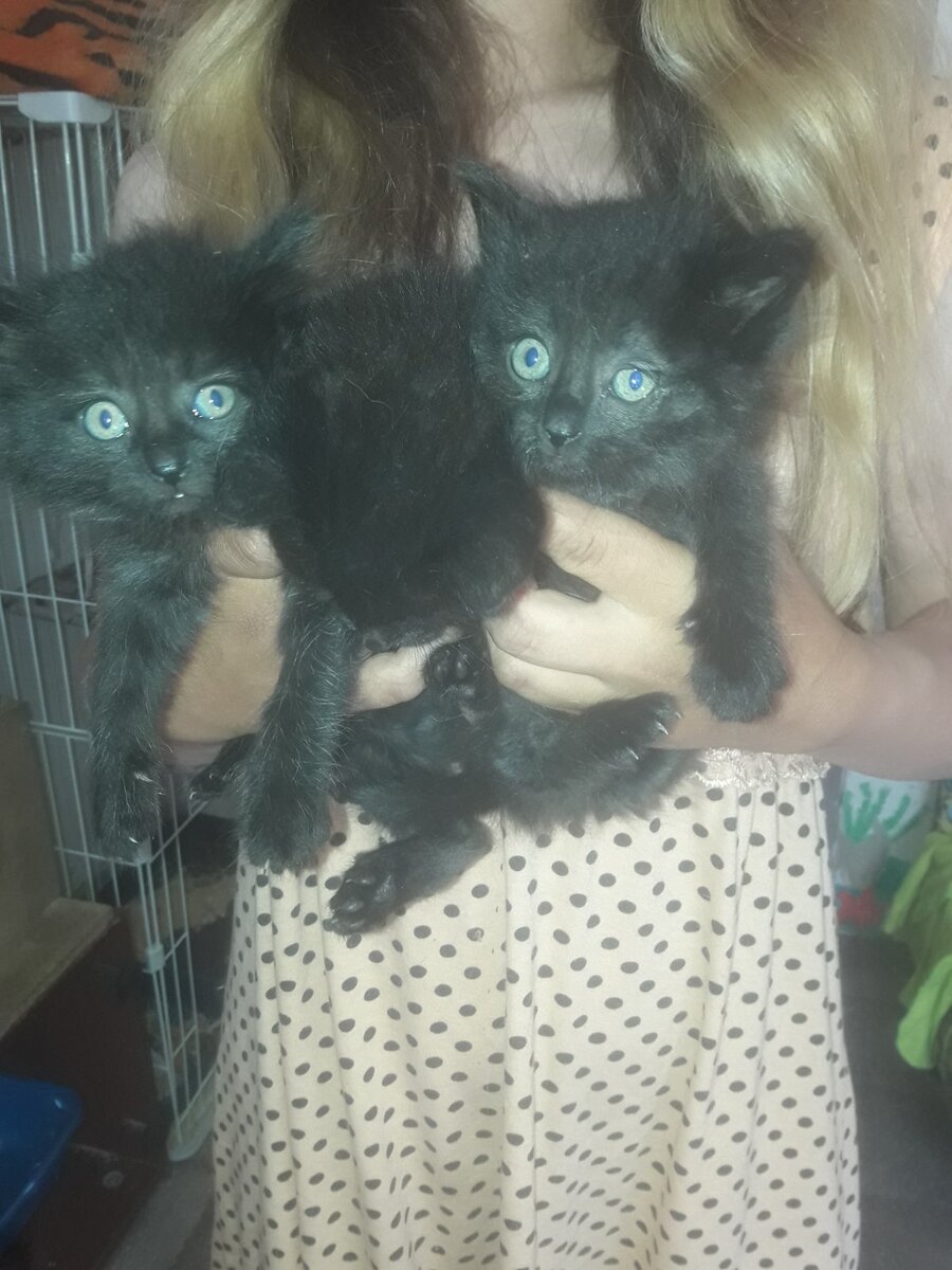 Сегодня утром, в воскресенье, женщина увидела коробку около магазина Титан. Коробка была заклеена скотчем, и стояла там по всей видимости всю ночь, так как дочка этой женщины проезжала мимо с работы вечером, почти ночью. Волонтёры не могут просто пройти мимо коробок. И в этот раз чутье не подвело. Там сидели перепуганные котятки! Три чёрных пушистика. Оставить их там было невозможно, и Ольга азабрала их пока к себе, и помчалась на работу. И это учитывая то, что на передержке у нее сейчас около 15 кошек и котят, тоже когда то выкинутых. Вечером ждем фото, напишет мальчики это, девочки ли. И булембудем искать им дом