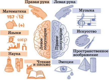 Мышление – это продукт деятельности всего мозга, но исследования показали, что левое и правое полушария по-разному участвуют в процессах мышления. Иными словами, существует асимметрия в работе, т. е. в функциях, правого и левого полушарий мозга. Эту асимметрию назвали функциональной. Левое полушарие отвечает за речь, абстрактно-логическое мышление, а в правом полушарии на основе информации, получаемой через органы чувств, формируются конкретные образы. Левое полушарие лучше воспринимает последовательно получаемую информацию, например запоминание читаемого текста связано именно с левым полушарием, а вот распознавание изображения предмета или фотографии человека, происходящее за сотые доли секунды, связано с работой правого полушария. Иными словами, правое полушарие связано с работой первой сигнальной системы, а левое – с работой второй сигнальной системы. Люди с преобладанием функций левого полушария имеют хорошие логические способности, у них развита речь, из них получаются хорошие ан