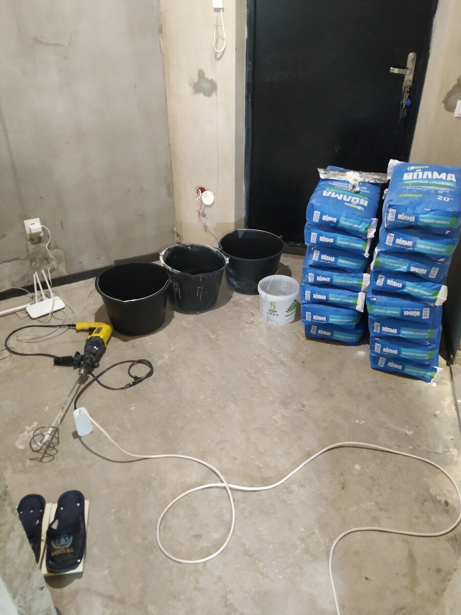 Напомню, что мы переехали и живём в квартире без отделки и потихоньку, своими силами делаем ремонт. Сегодня на очереди наливной пол сразу в двух комнатах, в коридоре и кухне, под укладку плитки. Для заливки больших площадей, необходима специальная обувь с шипами на подошве, называется "мокроступы" и стоит в магазине около 800 рублей. Если заниматься этим постоянно, конечно необходимо приобрести такую обувь, но для заливки двух комнат, это не рентабельно. Поэтому я своими руками изготовил "мокроступы" и вышло мне это примерно 100 рублей. Но можно обойтись и без затрат. Сейчас расскажу как. Мои 100 рублей ушли на тёрку для штукатурки, остальные материалы были дома. Вместо тёрки можно использовать обычную доску, подобного размера. Отрезал ручку и поделил на две ровные части Далее подобрал подходящие саморезы. Разумеется, чем их больше тем надёжнее будет конструкция. Вкрутил одинаковое количество в обе дощечки. Далее саморезами прекрутил старые домашние тапки к "мокроступам" В итоге у ме
