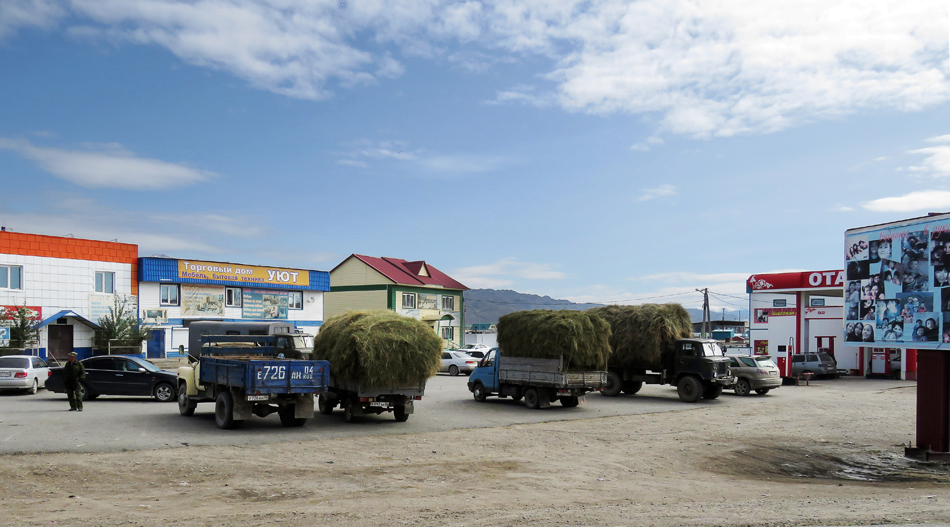 Монгольская специфика начинается ещё до прибытия на границу. Заключается она как минимум в том, что граница здесь работает только в будние дни с 10 до 17, с обеденным перерывом в 13-14 часов, и прохождение её редко бывает быстрым. В Кош-Агаче монгольские казахи набирают пассажиров до Улгия у "Марии-Ра", и просят всего-то по 500 рублей с человека - против нескольких тысяч за извоз у местных таксистов. Вот и ко мне под вечер подошёл неряшливый дядька с выразительными глазами и расстёгнутой ширинкой, и задумчиво почёсывая ниже пояса, сказал: