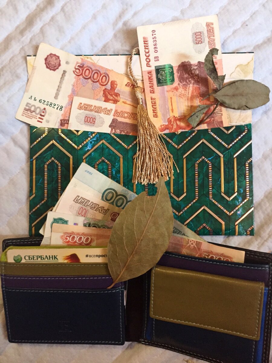 Лавровый лист с древнейших времён считается мощнейшим символом для привлечения денег. Многие думают, что достаточно его просто носить в своем кошельке. Вот только не все знают, как правильно его подготовить, активизируя талисман, как правильно сделать из него магнит для финансов. На самом деле подготовить его очень даже легко, показываю! Берем лавровый лист и дожидаемся дня с растущей луной. Как только Вы проведёте правильно обряд, его можно будет убрать в кошелек или поместить на место, где вы храните свои деньги. Процесс подготовки. Из пачки с лавровыми листами, находим веточку на которой есть один или несколько листочков. Отрываем один листок и поджигаем его спичками или зажигалкой. Важно, чтобы листок не сильно горел, а испускал легкий тлеющий дым. На моём примере видно, что я основную часть денег храню в зелёном конверте. Вы должны разложить свои сбережения над предметом в котором храните свои деньги. И именно над этим предметом проводить ритуал.(сейф, конверт, кошелёк, красная