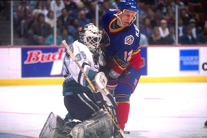 Нажмите, чтобы услышать эфир спортивного Радио "Движение" Мысль о появлении чисто русских троек давно вызревала в НХЛ, но как-то все не складывалось. Вместе могли сыграть даже Крутов — Ларионов — Макаров. Возможно, если бы какой-то заокеанский клуб сумел всех их вместе собрать вместе, то сорвал бы большой банк. Но так получилось, что Крутов и Ларионов сперва играли без Макарова в «Ванкувере», а затем Макаров и Ларионов без Крутова в «Сан-Хосе». Увы... А первым клубом, где очевидная идея была претворена в жизнь — оказался как ни странно «Сент-Луис». Клуб, где никогда особо не примечали европейцев, и особенно, русских. И, тем не менее, именно «Блюзмены» вошли в историю — в сезоне 1992/93 на свет появилась тройка Виталий Карамнов — Игорь Королев — Виталий Прохоров. Первые два — московские динамовцы. Прохоров — спартаковец. Их прозвали Moscow Express Line - "московский экспресс" Надежды на них были большие. Генеральный менеджер «Блюз» Рон Карон был уверен, что Королев способен игра