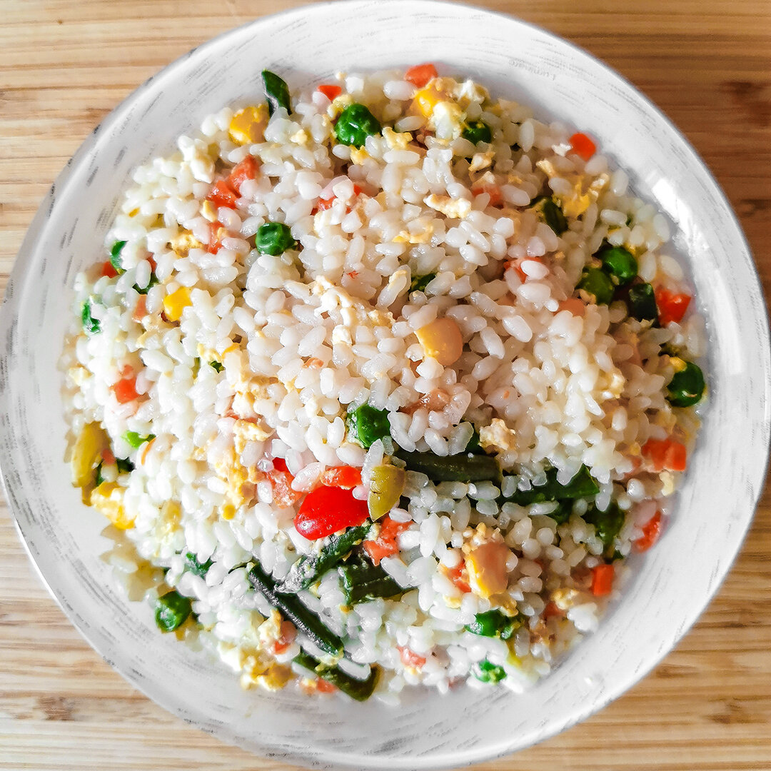 Описание: Хочу вам показать рецепт риса с овощами. Как его готовлю именно я. Данное блюдо выигрывает тем, что его можно готовить круглый год – летом и осенью можно готовить, используя сезонные овощи, а в зимний период замороженные овощи. Рецепт приготовления: На раскаленную сковороду добавим немного масла и первым делом обжарим овощи. Помешивая, готовим 5 минут. Затем разбиваем яйцо и перемешиваем с овощами. Солим и обжариваем смесь минуту. Огонь сбавляем на малый. Высыпаем рис. Равномерно распределяем. Заливаем горячей водой, которая должна покрыть рис на пол сантиметра. Как только воды почти не останется, снимаем с плиты и даем настояться минут 10. За это время рис дойдет до идеального состояния. Ингредиенты: Видео рецепт: