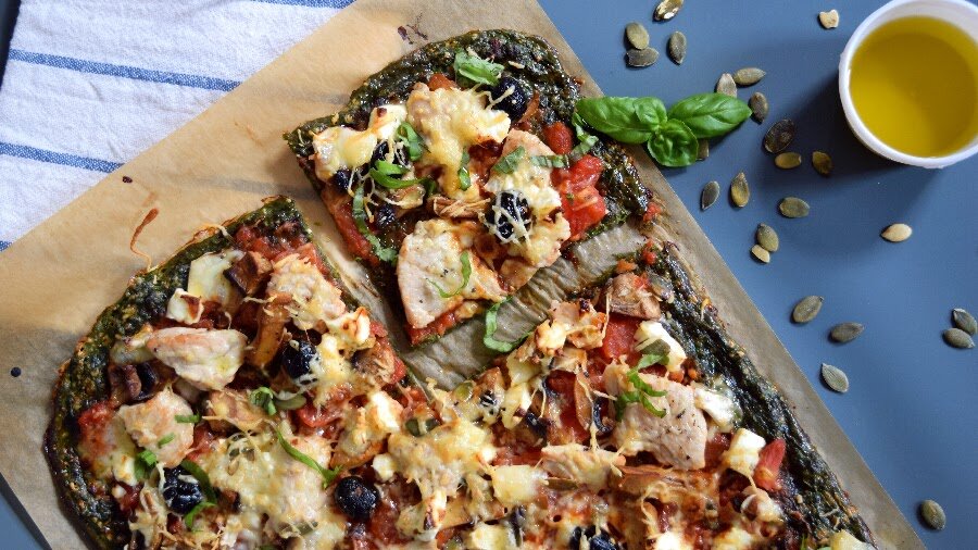 За свою жизнь я попробовала кучу разных пицц, и жирнющих колбасных, с сочащимся сыром, и максимально странных, из цветной капусты, цуккини и тыквы. Пицца со шпинатным тестом является, по крайней мере дома - абсолютным победителем всех безглютеновых пицц с низким содержанием углеводов. Не то чтобы пицца из цветной капусты, цуккини и тыквы не была хороша, но в отличие от шпинатной она попросту не такая на вкус, как пицца. Т.е. выглядит она даже как пицца, но вкус напоминает просто салат. И как приятное дополнение, после того как вы съедите всю эту пиццу, вы можете просто сказать, что съели кучу шпината, и это здорово, не правда ли?) Ингредиенты: Тесто: -400 г свежего шпината -1/2 стакана тертого сыра “Эдам" -3 яйца -щепотка соли -щепотка перца Топпинг: Тут все предельно просто: вы можете положить почти все что угодно на пиццу со шпинатом, в точности как на обычную пиццу. Если вам нужен пример, то я использовала томатную пасту, жареные на гриле грудки, сыр фета, оливки, грибы, тыквенные с