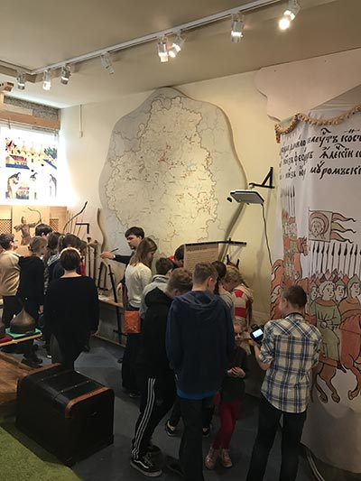 Первый наш музей – «Тульские древности». Сначала мы послушали очень познавательную экскурсию об истории Куликовской битвы. Гид был дружелюбен, ребята принимали активное участие в диалоге. Не все, конечно, самые эрудированные. А когда пришло время надевать латы и шлемы, брать в руки лук, стрелы, собирать исторические пазлы, одевать-раздевать магнитного воина, примерять элементы кольчуги, тут уж оживились все ребята…