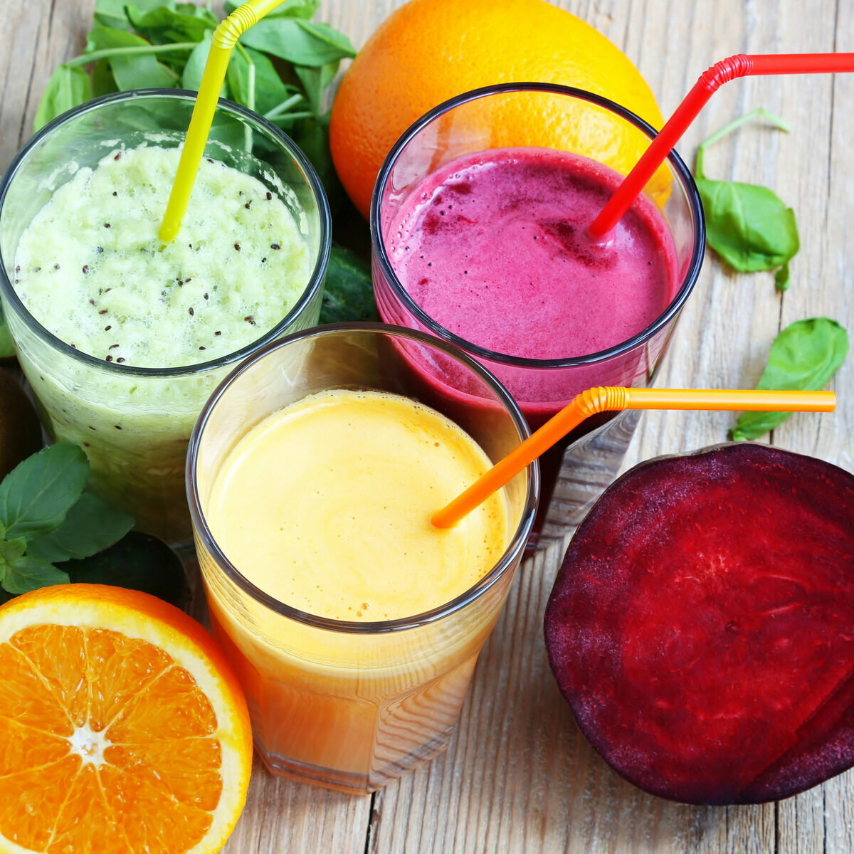Очищающие смузи Очищающим эффектом в большей или меньшей степени обладают практически все смузи. Для вывода шлаков из организма можно воспользоваться вот таким рецептом. Очищаем морковь (3 шт.) и свеклу (1 шт.) от кожицы и нарезаем кубиками. Мелко рубим с помощью ножа чеснок (2 зубчика) и петрушку (пучок). Закладываем в чашу блендера измельченные ингредиенты, добавляем редис и взбиваем. Смузи для похудения на завтрак Жиросжигающие смузи Жиросжигающим эффектом обладают грейпфрут, киви, клубника и другие фрукты и ягоды. Такие коктейли лучше всего пить сразу после тренировки. Для любителей кисло-сладкого вкуса подойдет коктейль из ананаса и грейпфрута. Такой напиток не только поможет сбросить несколько лишних килограммов, но и нейтрализует свободные радикалы и токсины. Для приготовления такого смузи нужно смешать в блендере мякоть половины ананаса и грейпфрута. Добавьте в напиток ложку меда и несколько кубиков льда. Для т