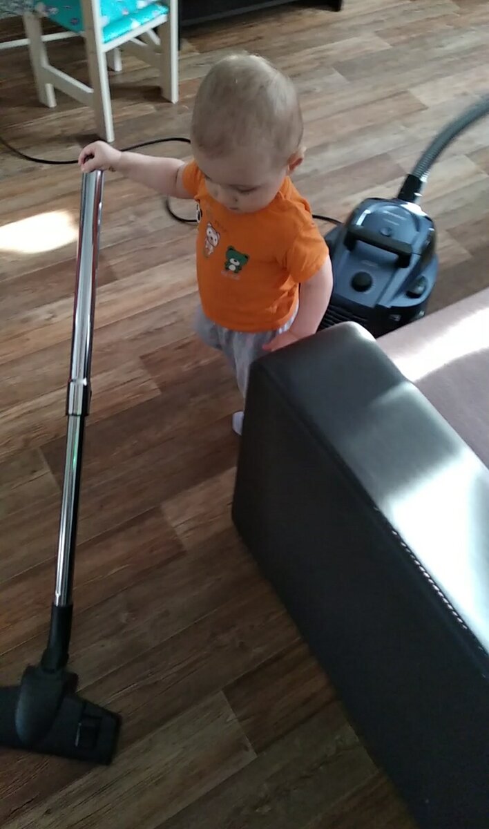 Сыну полтора года, а я его уже заставляю помогать убираться дома!