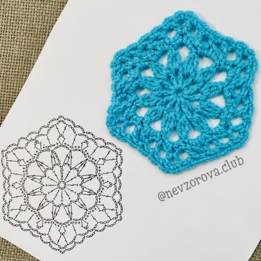 Шестигранные мотивы часто используют для различных изделий в технике пэчворк. Из них вяжут прекрасные составные пледы, одеяла и подушки и даже домашние тапочки. Сегодня я хочу поделиться с вами схемой к красивому шестиугольнику.
