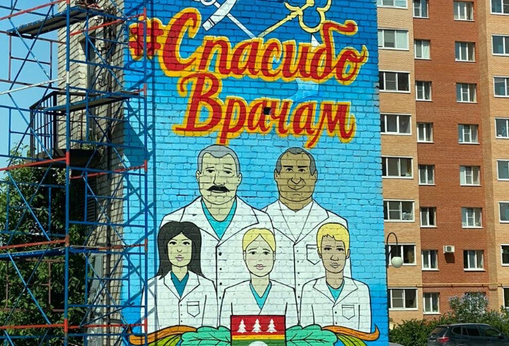 Рисунок появился с разрешения местных властей. В поселке Тельмана Тосненского района на стене одного из домов появилось граффити в благодарность врачам. Информацию и фото об этом опубликовали в группе "Вечернее Колпино" в социальной сети "ВКонтакте". На граффити изображены реальные врачи Тосненского района. Рисунок появился с разрешения местных властей, поэтому закрашивать его точно не будут. Кроме того, власти поддержали инициативу и выделили деньги на ее реализацию. Авторами граффити стали члены спортивно-патриотического клуба "Металлострой". Торжественное открытие граффити состоится 12 июня.