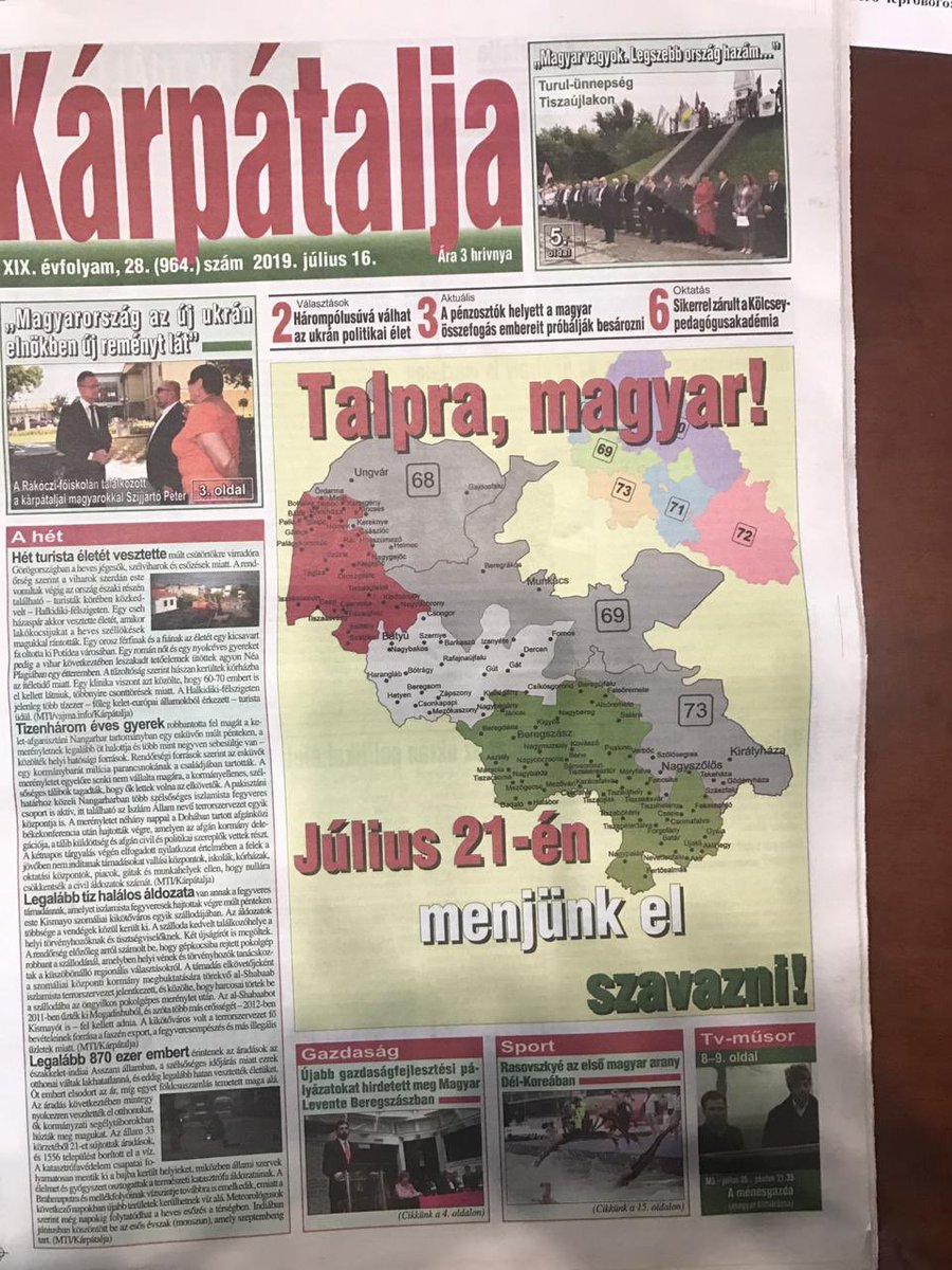 Министерство громад и территорий обнародовало проекты будущих районов Украины в рамках децентрализации. В Одесскую и Закарпатскую области внесли корректировки после международных скандалов. Офис Президента решил избежать дальнейшей эскалации конфликта и пролоббировал создание Венгерского/Береговского и Болгарского/Болградского района/округа. На высшем уровне готовится встреча Президента Украины и Премьер-министра Венгрии, которая состоится в июле месяце в Киеве. На ней будут подписаны ряд международных договоров и определены драфты сотрудничества, Венгерское Правительство готово предоставить кредит для развития Закарпатской области. «Ползучая экспансия» Венгрии на Украину По словам государственного секретаря Венгрии по национальной политике Арпада Яноша Потапи финансовая помощь Закарпатской области в этом году увеличилась до 300 миллионов гривен. Деньги получат более 20 тысяч человек: работники образования, здравоохранения, СМИ, культуры и социального сектора. Около 2 миллиардов грив