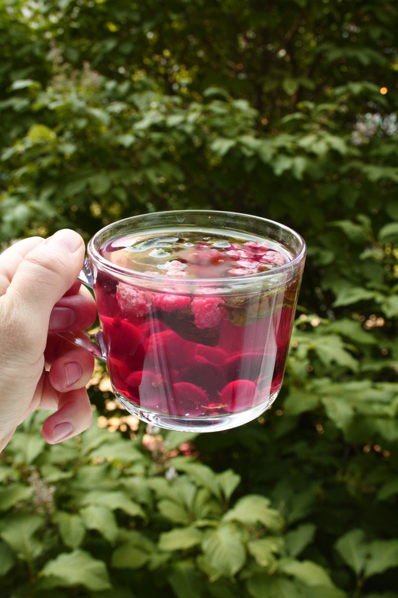 Конкретного рецепта нет, но поделюсь с вами идеей:):) Я беру около 4 листиков мяты на кружку и добавляю ягоды какие есть в доме, в этот раз были крыжовник, малина и черешня. Добавляйте сколько не жалко, но чтобы это получился именно чай по консистенции, а не пюре:):) Все заливаю кипятком, настаиваю минут 10 под крышкой и все! Вкусный чай готов. Он скрасит любой теплый летний вечер и зарядит утро бодростью:)