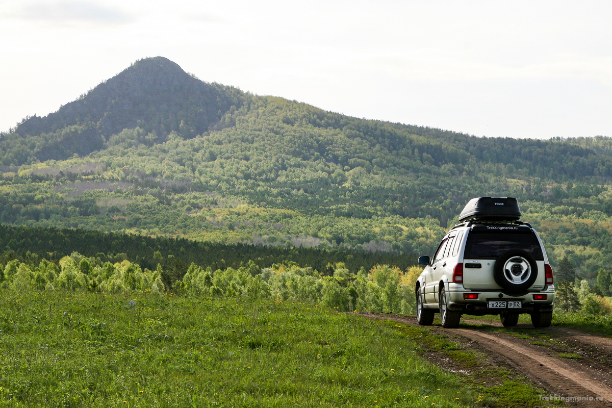 Начнём нашу прогулку возле деревни Рысакаево, до неё из Белорецка ходит автобус. На своём автомобиле можно проехать ближе к вершине, сразу за деревней в направлении горы (а её хорошо видно уже с дороги) ведут полевые дороги. В сухую погоду проедет любой автомобиль, в дождь есть опасность соскользнуть в глубокую колею. Примерно Через два с половиной километра начнутся грязные участки, дороги пересекают ручьи, поэтому лучше оставить машину здесь и уже начать наслаждаться пешей прогулкой и чистым горным воздухом.
