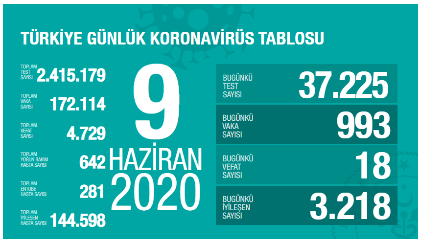 За последние сутки проведено 37.225 тестов, из них 993 положительные. 18 человек умерли, 3.218 выздоровели.