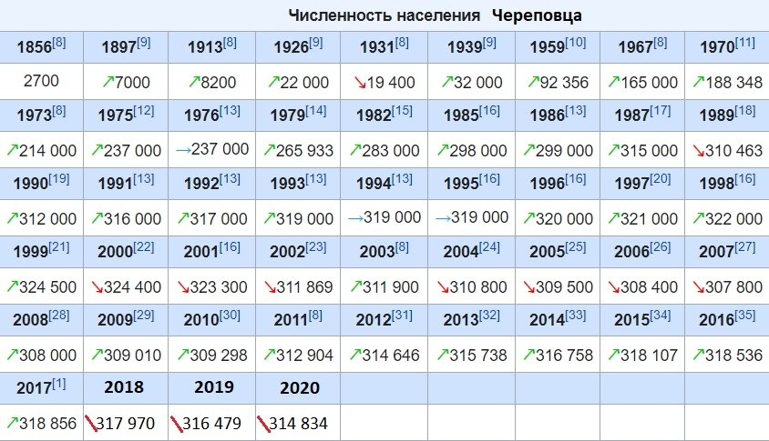 Официально в городе на Шексне на начало 2020 года проживало 314 834 человека. В 2019 году умерло 1 645 череповчан.