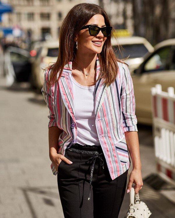Летние жакеты и пиджаки Наличие легкой верхней одежды для образов на лето имеет огромное значение: во-первых, она позволяет уберечь вас от утренней прохлады или непогоды, а также придает завершенность модным летним аутфитам. Выберите цветочный блейзер, жакет в полоску или в горошек, которые окажутся превосходными для многих трендовых летних луков. Блузы и топы для летнего сезона Уличные сеты на лето с шортиками и юбками, брюками в офис или летними джинсами лучше всего дополнить очаровательными блузками, выполненными с кружевными элементами и открытыми плечиками, что придаст облегченность в летние луки. Модные летние образы: джинсы Трендовые джинсы находят свое применение в каждом сезоне: даже жарким летом без модных джинсов не обойтись. Носить летние джинсы лучше всего с майками в бельевом стиле и кружевной отделкой, блузками и рубашками с принтами, а также оригинальными футболками с надписями. Мода на лето: трендовые юбки Особое восхищение этим летом вызовут модные юбки плиссе и в кру