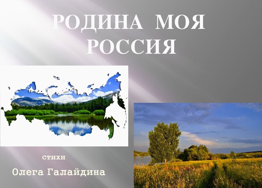 . стихи Олега Галайдина . Родина моя, любимая Россия, Статная, великая страна. Предками воссозданная сила, Словно неприступная стена. . Сколько ты в себе таишь богатства, В людях твоих страсть есть и покой. Сколько нам навязывали рабство, Народ непокорённым будет твой. . Ты в веках прославилась свободой, Широтой души своих людей. Манящей, да загадочной природой, И песней длинношеих лебедей. . Мы знаем, кто назвал тебя немытой, Он пожалел об этом много раз. И ложью откровенной, неприкрытой, Тебя полощут недруги сейчас. . Страна моя, любимая Россия, Врагами не надломленная Русь. Ты по земле шагаешь как мессия, Тебе я в вечной верности клянусь. . 20/01/2019г Олег Галайдин . . ДОРОГИЕ МОИ ЧИТАТЕЛИ! БЛАГОДАРЕН ЗА ВАШЕ ВНИМАНИЕ К МОЕМУ ТВОРЧЕСТВУ. ЖДУ ОТ ВАС МНОГО ЛАЙКОВ!!! ОБЯЗАТЕЛЬНО ПОДПИСЫВАЙТЕСЬ НА МОЙ КАНАЛ, ГДЕ Я С УДОВОЛЬСТВИЕМ БУДУ ВЫКЛАДЫВАТЬ ДЛЯ ВАС СВОИ СТИХИ, СКАЗКИ И РАССКАЗЫ. Всегда ВАШ, Олег Галайдин ))) .