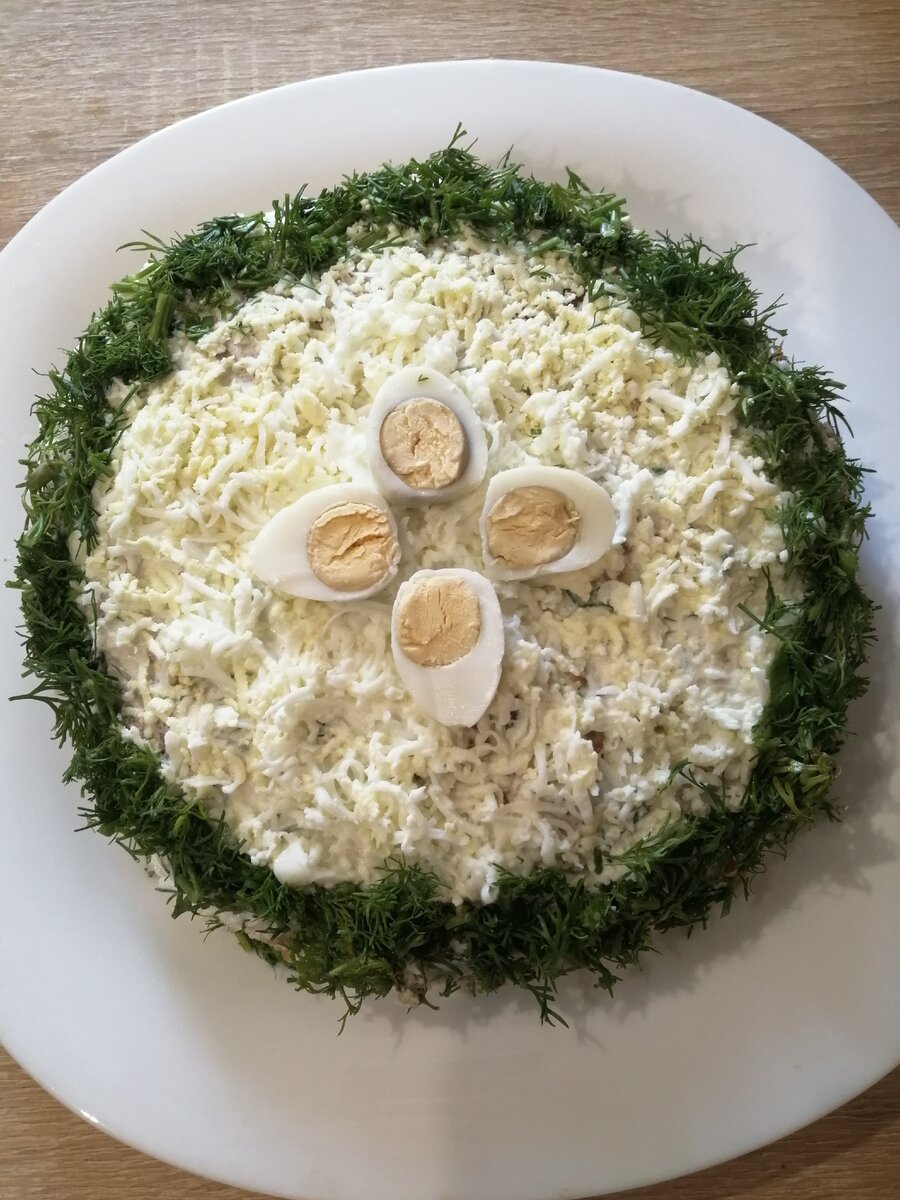 Сверху мелко натираю отварные яйца 2 шт. (с ними тортик получается нежнее)