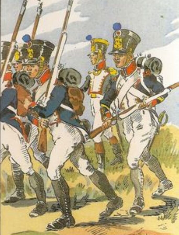 Через несколько дней войска снялись и направились на Гумбиннен (теперь Гусев) под оглушительные звуки литавр, визг флейт и треск барабанов. Пруссаки смотрели, слушали и ужасались, даже немного жалея русских, на которых вскоре должна была всей своей мощью обрушиться Grande Armée. Хотя вообще-то, любили поговорку, гласившую: