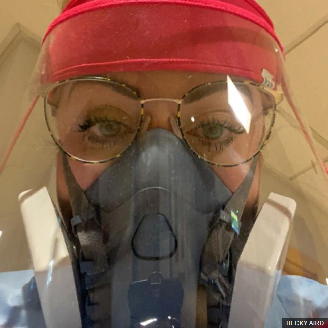 Бекки Эйрд является специалистом дыхательной медсестрой и действующей сестрой в нашем самом загруженном отделении Covid-19. Три месяца назад, до того как у нас появился наш первый пациент, она приняла трудное решение переехать из дома своих родителей, чтобы защитить свою мать, у которой есть MS.