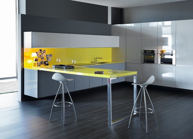 Современный стиль хай-тек универсален. Он одинаково хорошо подходит для просторных апартаментов и малогабаритных квартир. Такая кухня — выбор практичных людей, идущих в ногу со временем. Отделка и обстановка делаются из качественных материалов, изготовленных по передовым технологиям. Стиль недешев, но высокая стоимость оправдана долговечностью и максимальным удобством. Дизайн кухни в стиле хай-тек Отделка В стиле хай-тек преобладают нейтральные цвета: черный, серый, белый, оттенки коричневого, металлические оттенки. Чтобы разбавить однотонные интерьеры, используют яркие контрастные цвета: красный, оранжевый, желтый, зеленый. В отделке используют матовые и глянцевые поверхности. Полированный керамогранит или кафель на полу и глянцевый потолок сочетаются со стенами, окрашенными однотонной интерьерной краской или оклеенными обоями без рисунка. Для акцентных стен используют обои с геометрическим рисунком, алюминиевые или МДФ-панели. Несмотря на технологичность, в интерьерах хай-тек часто