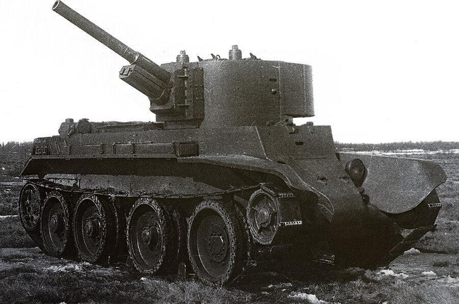 БТ-7 - быстроходный танк. Его военным дебютом стали боевые действия против японских войск у озера Хасан летом 1938 года. Однако наилучшим образом БТ-7 показали себя годом позже в Монголии в боях на Халхин-Голе, где в степях в полной мере проявились высокая скорость и маневренность этого танка. Успешно действовали БТ-7 во время похода Красной Армии в Польшу в сентябре 1939 года, когда стремительное продвижение мобильных танковых групп позволило парализовать возможные активные действия польских войск. На начальном этапе Великой Отечественной войны по своим боевым качествам БТ-7 не уступали большинству немецких танков и применялся до первой половины 1942 года. Заключительным эпизодом в боевой биографии БТ-7 стала советско-японская война в августе-сентябре 1945 года. На тот момент эти уже устаревшие танки входили в состав вторых батальонов танковых полков и шли в проры