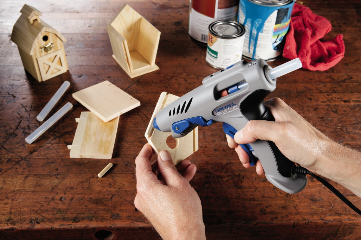 Инструмент Dremel вообще славится своим качеством, поэтому не удивительно, что клеевой пистолет столь удобный и надежный. У него мягкий, четко работающий курок, и очень точный механизм подачи клея. Носик не «сопливит», даже если оставить инструмент включенным на полную мощность, и вы не испачкаете стол каплями клея.