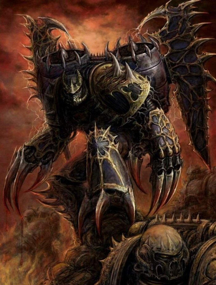 Перед нами, дамы и господа, космические десантники Хаоса. То, что от них осталось, во всяком случае. Как вы видите, они сильно изменились под воздействием губительных сил, человеческого в них практически ничего не осталось (опустим вопрос, являются ли Астартес в целом людьми). Вообще, если я всё верно понял, то перед нами "вторая форма" рапторов Хаоса, как в "Покемонах". Только вот наши герои так долго и яростно шли по пути охоты, что уже забыли о прочих аспектах жизни.